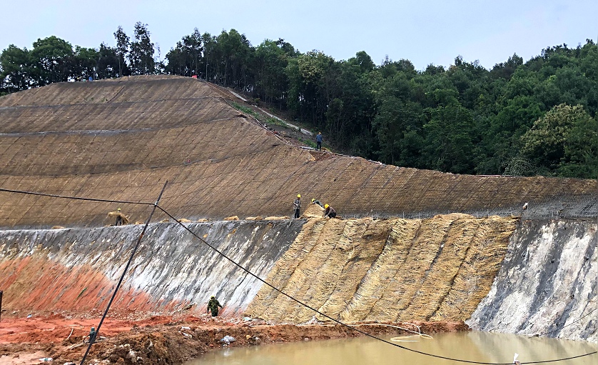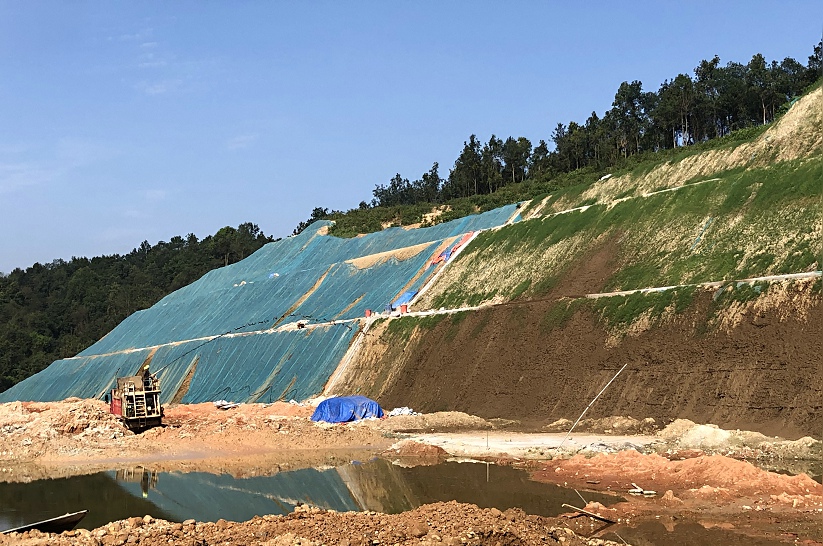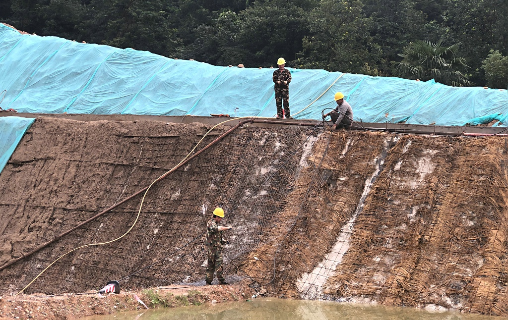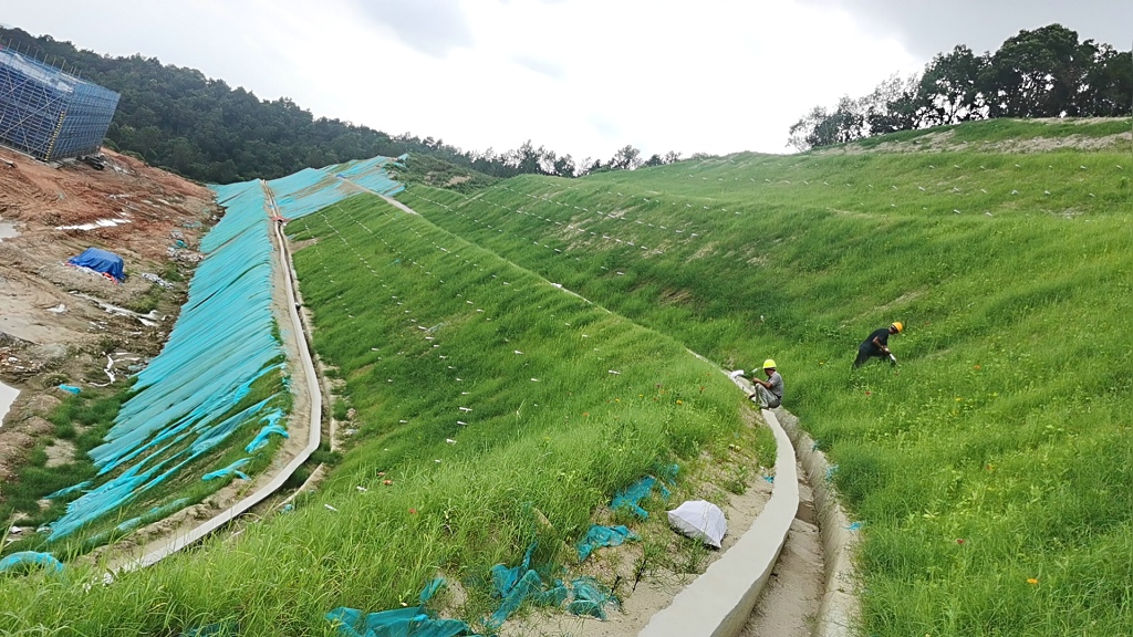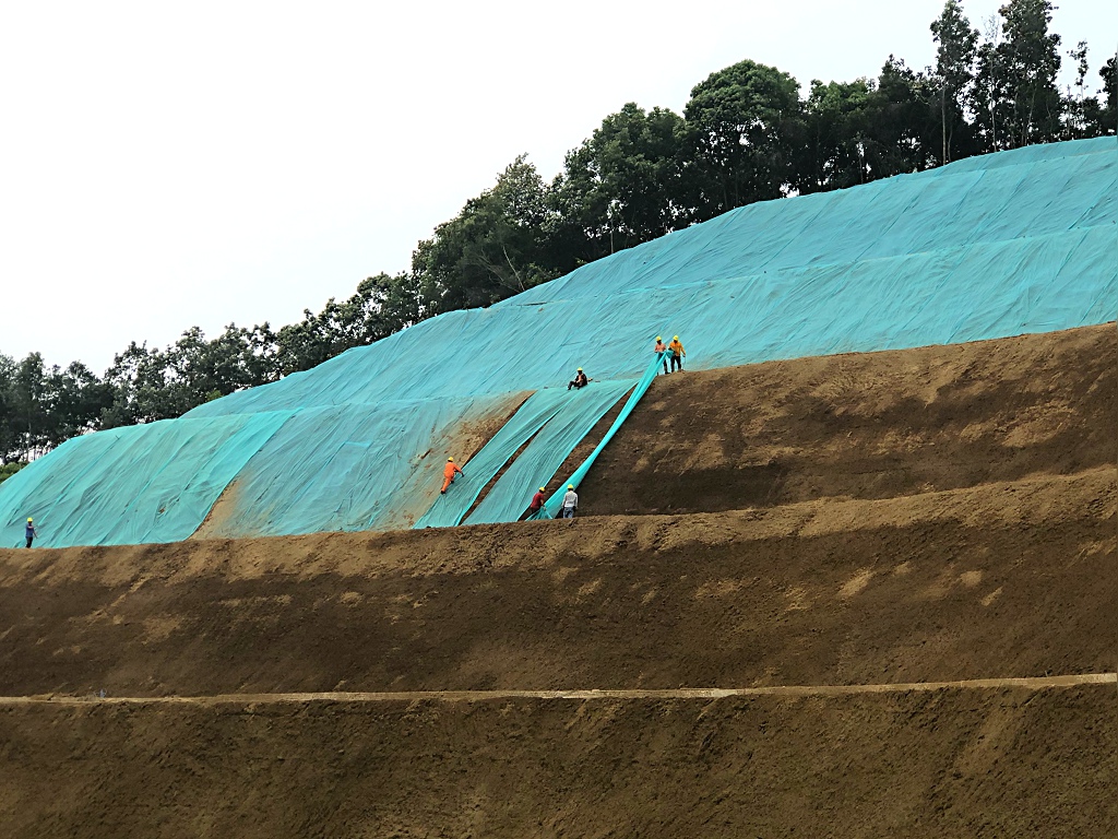 新建猇亭服務(wù)區(qū)路塹邊坡綠化防護(hù)優(yōu)化工程項目-右場坪高邊坡-覆蓋無紡布↓