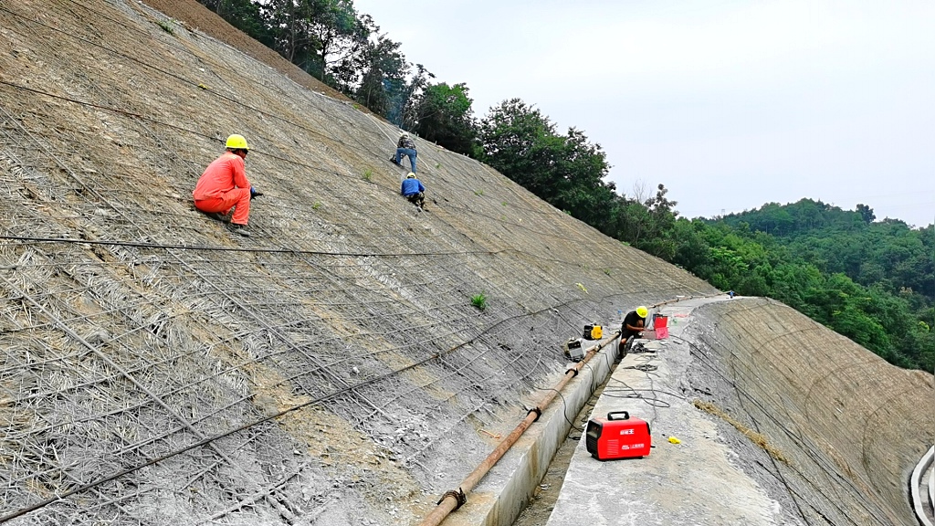 新建猇亭服務(wù)區(qū)路塹邊坡綠化防護(hù)優(yōu)化工程項目-右場坪高邊坡-鋪設(shè)鋼筋網(wǎng)↓