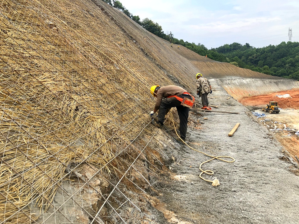 新建猇亭服務(wù)區(qū)路塹邊坡綠化防護(hù)優(yōu)化工程項目-右場坪高邊坡-掛草簾↓