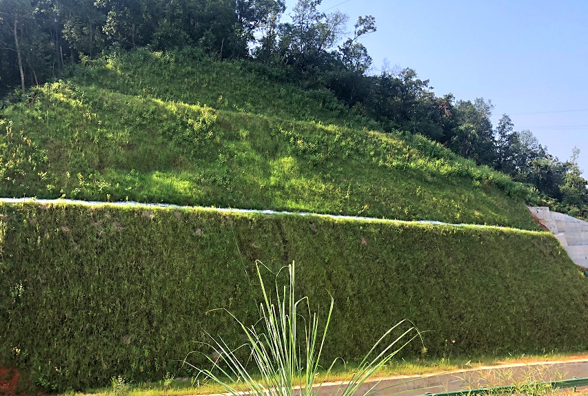 新建猇亭服務(wù)區(qū)路塹邊坡綠化防護(hù)優(yōu)化工程項目-左場坪GL1K0+103-212坡-噴播完成后4個月↓
