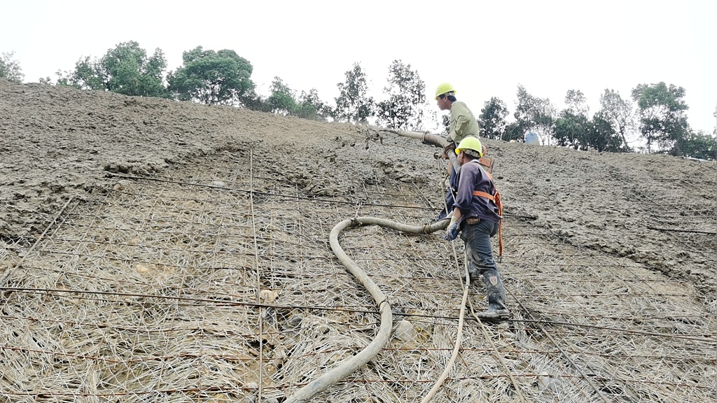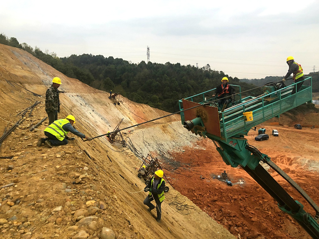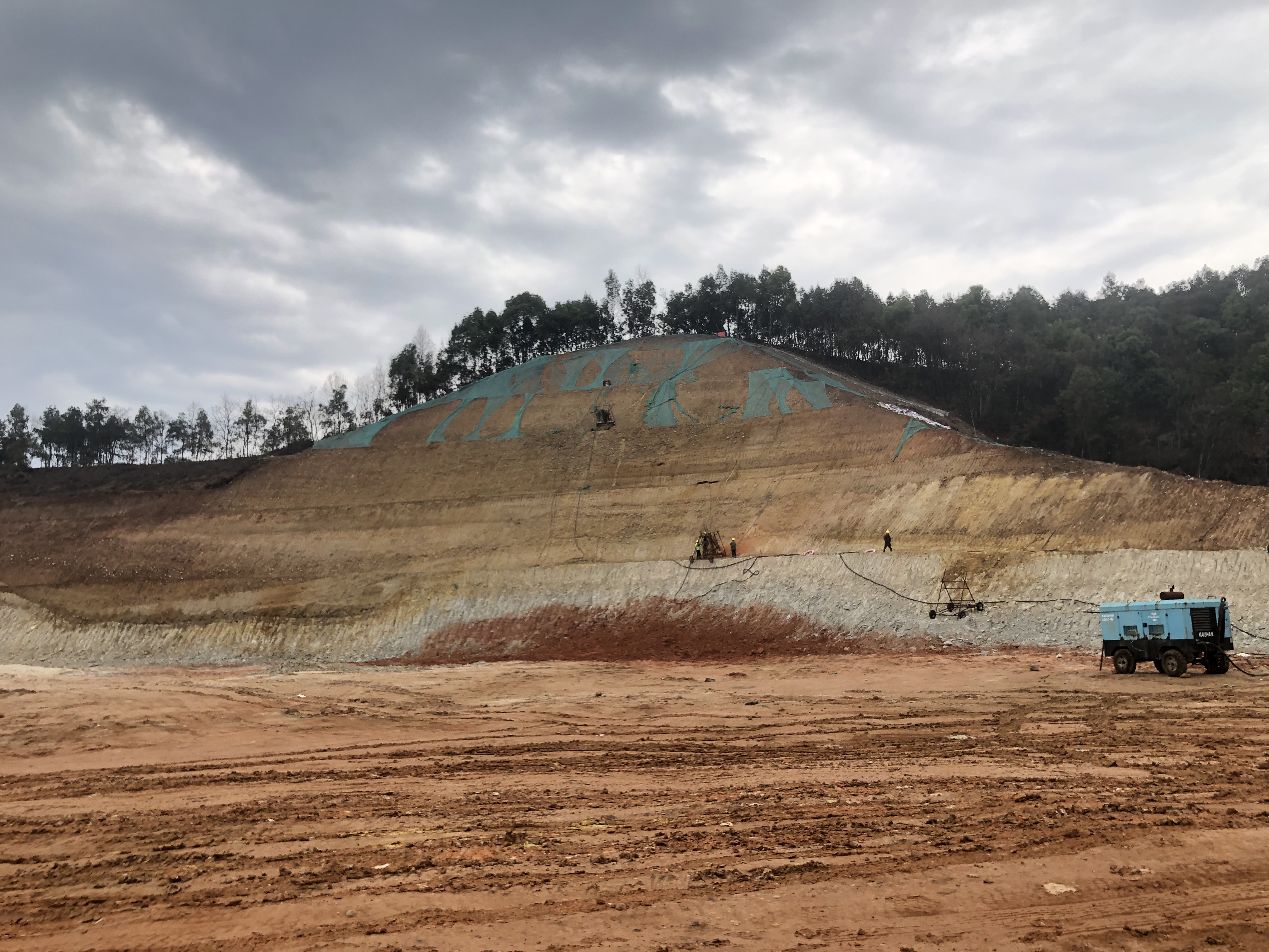 新建猇亭服務(wù)區(qū)路塹邊坡綠化防護(hù)優(yōu)化工程項目-右場坪高邊坡-插錨桿↓