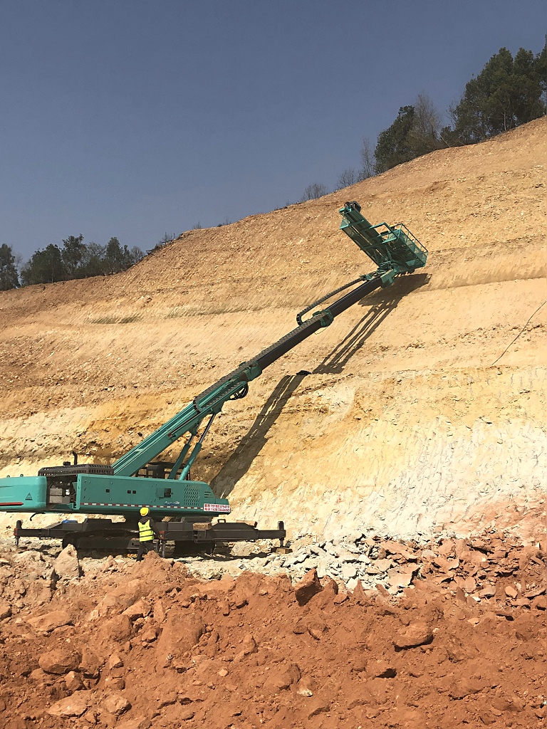 新建猇亭服務(wù)區(qū)路塹邊坡綠化防護(hù)優(yōu)化工程項目-右場坪高邊坡-潛孔鉆鉆孔、高臂鉆鉆孔↓