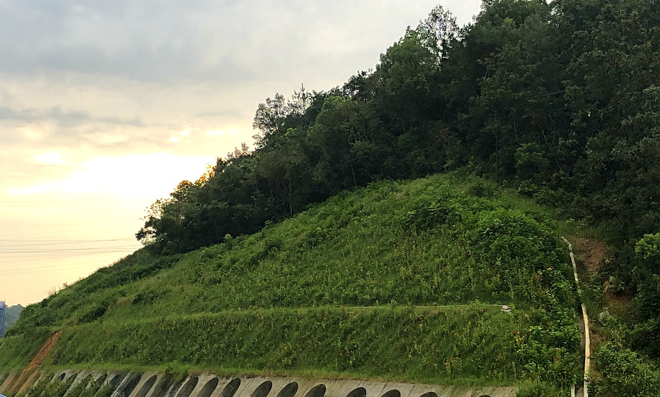 新建猇亭服務(wù)區(qū)路塹邊坡綠化防護(hù)優(yōu)化工程項目-左場坪GL1K0+265-530坡-噴播完成后4個月↓