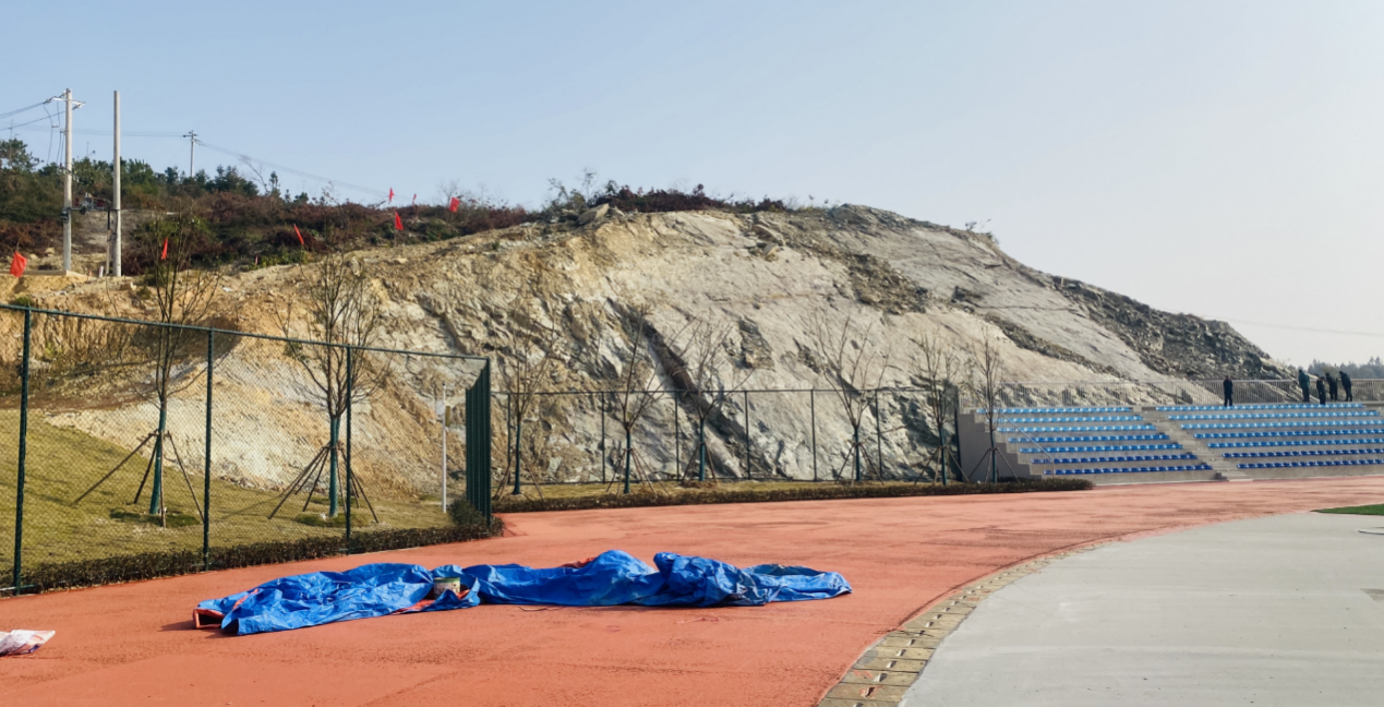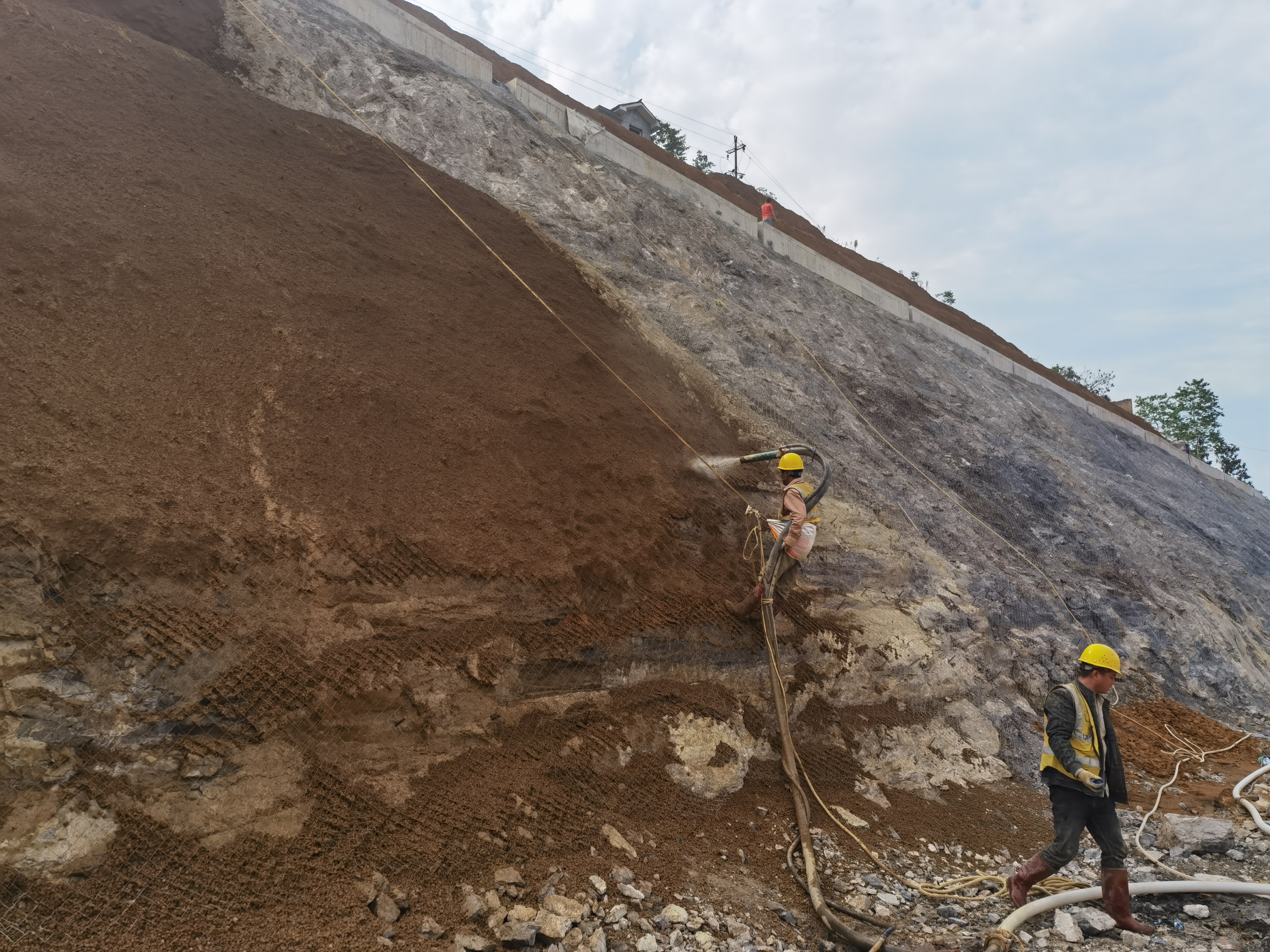 武漢商貿(mào)職業(yè)學(xué)院紅安校區(qū)足球場(chǎng)邊坡綠化工程項(xiàng)目-植被混凝土混合基材噴播↓